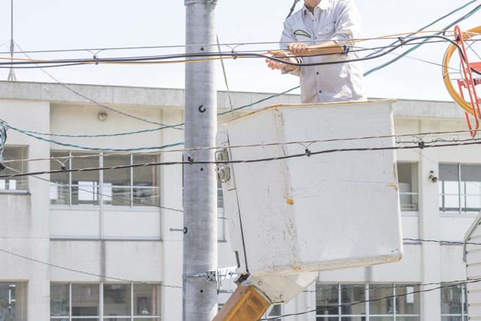引込工事とは、電力会社の電柱から電線を引っ張り、建物へと電力を引き込むための工事です。主に電力計器・配線用遮断機・分電盤の設置、引込口や分岐回路の配線を行ないます。